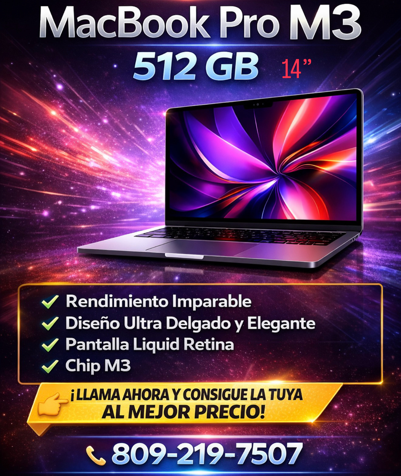 - Brillante pantalla Liquid Retina XDR de 14.2″: experimente colores vivos, negros profundos y detalles ultra nítidos con una resolución de 3024 x 1964, ideal para trabajos creativos, transmisión y productividad.